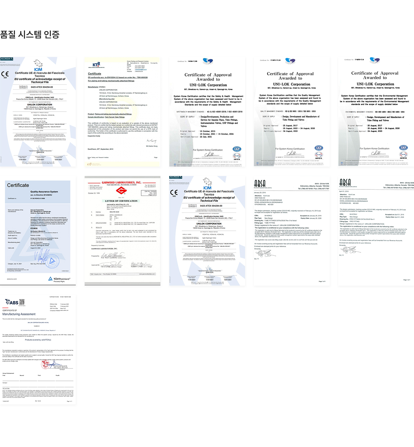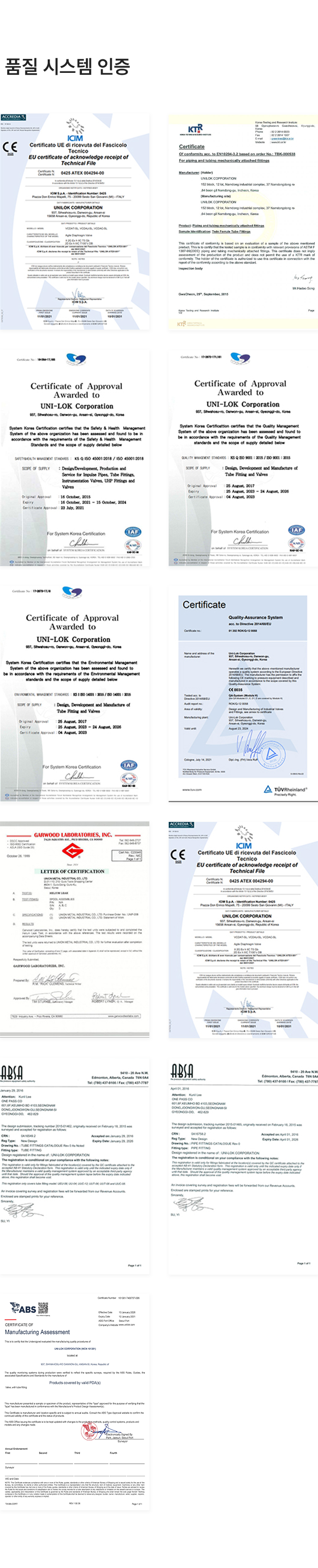 홈 > 품질보증 > 품질 인증서