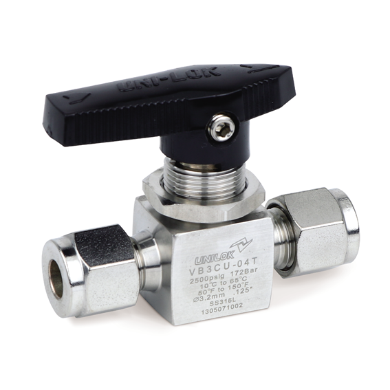 Example: The following part number, VB33U-08T-SS is designated for VB3 series ball valve with both 1/2" UNILOK tube fitting, 316SS, PTFE seat.