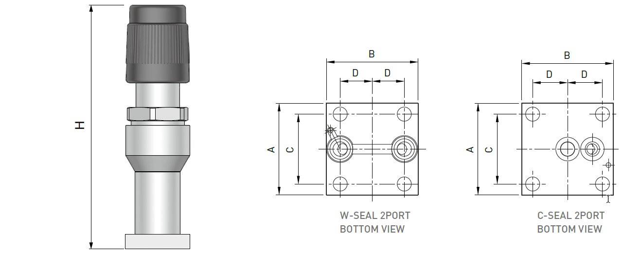 | C-*W | W-Seal | 1 | 1~60 psig / 0.1~4.1 bar | None | PCTFE | ||