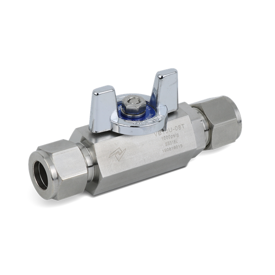 Example: The following part number, VB1U-04T-SS-B is designated for VB1 series ball valve with both 1/4" UNILOK tube fitting, 316SS, PTFE seat, butterfly handle.